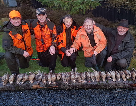 Des équipes de 6 canons idéalement avec leurs propres chiens de travail et nos cockers de chasse à la bécasse, passent jusqu’à 6 heures par jour à chasser dans la forêt de Gearach. La joie de regarder les chiens travailler le sol couplé avec le modèle erratique de vol de la Bécasse vous fournit le plus de tests de chasse aux oiseaux sportifs britanniques.