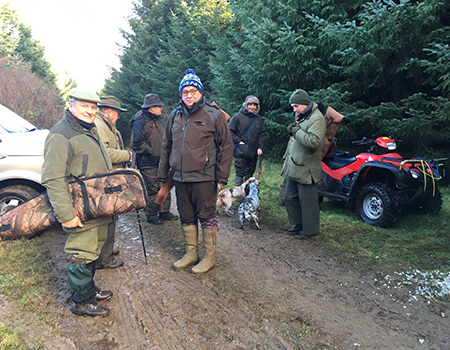 Les équipes d’idéalement 6 canons sont stratégiquement placées sur des manèges au sein de la foresterie. Mark et Eleanor avec leur équipe de bécasse de chasse des espagnols Cocker puis rincer les oiseaux.